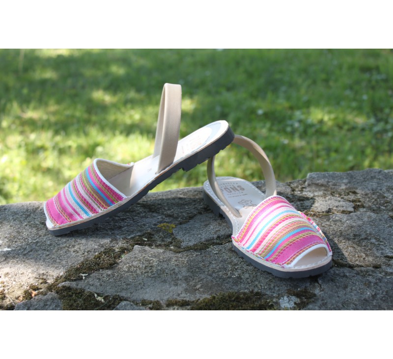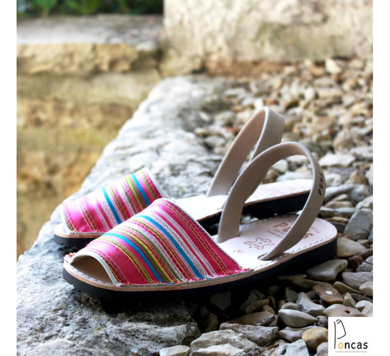 L'harmonie d'un textile résistant coloré et un cuir confortable apporte un grand confort, à mi-chemin entre les espadrilles et les Avarcas.